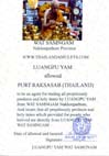 Phrakru Prayuttnawagarn or Luangpor Yam Wat Samngam, the right disciple of Luangpor Tae previous abbot. Gumarnthong amulets from him are top and most famous in Thailand. The amulet bless good business and working fotune. Gumarnthong from luangpor Yam is holy type beautiful made from brass inside with herb-clays bless/chant for 3 months.