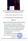 Luangpor Joy Arnarnlayo from Wat Sirimongkonboonyararm is one great monk of Thailand with powerful holy items. Luangpor Joy is famous with his spiritual visionary, dharma teaching, and many old art of spells. Luangpor Joy is one respectful master of thai buddhism, many actors/actress alway visited him to find good stuffs for their career, his amulets and consecrate items are powerful protection and bless good fortune in life. The gun fire were testing with his consecrate item by the soldiers, the gun won't fire out. The camera can't press and the flash didn't work with his mahaautt spells. Luangpor Joy is one powerful monk of Thailand who success high class of yana meditation. [ Official Temple Agent : Thailandamulets.com ]