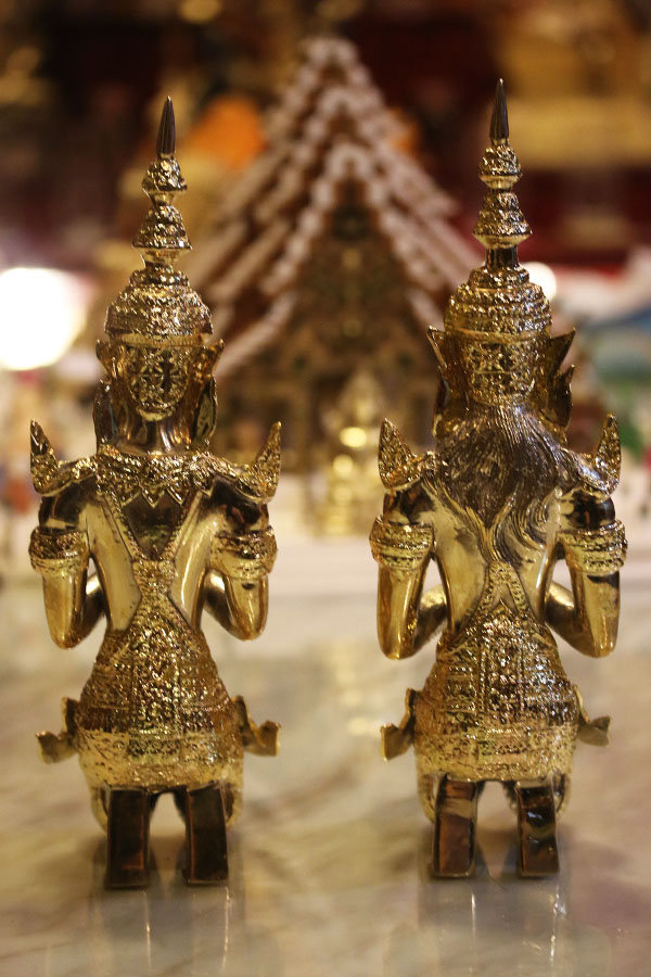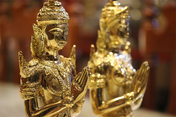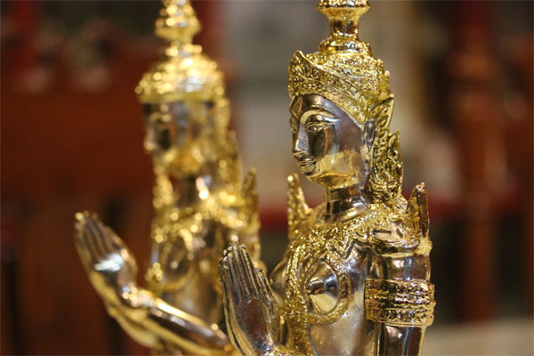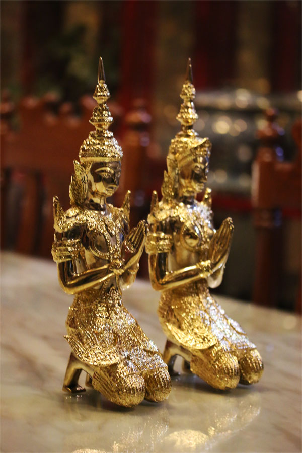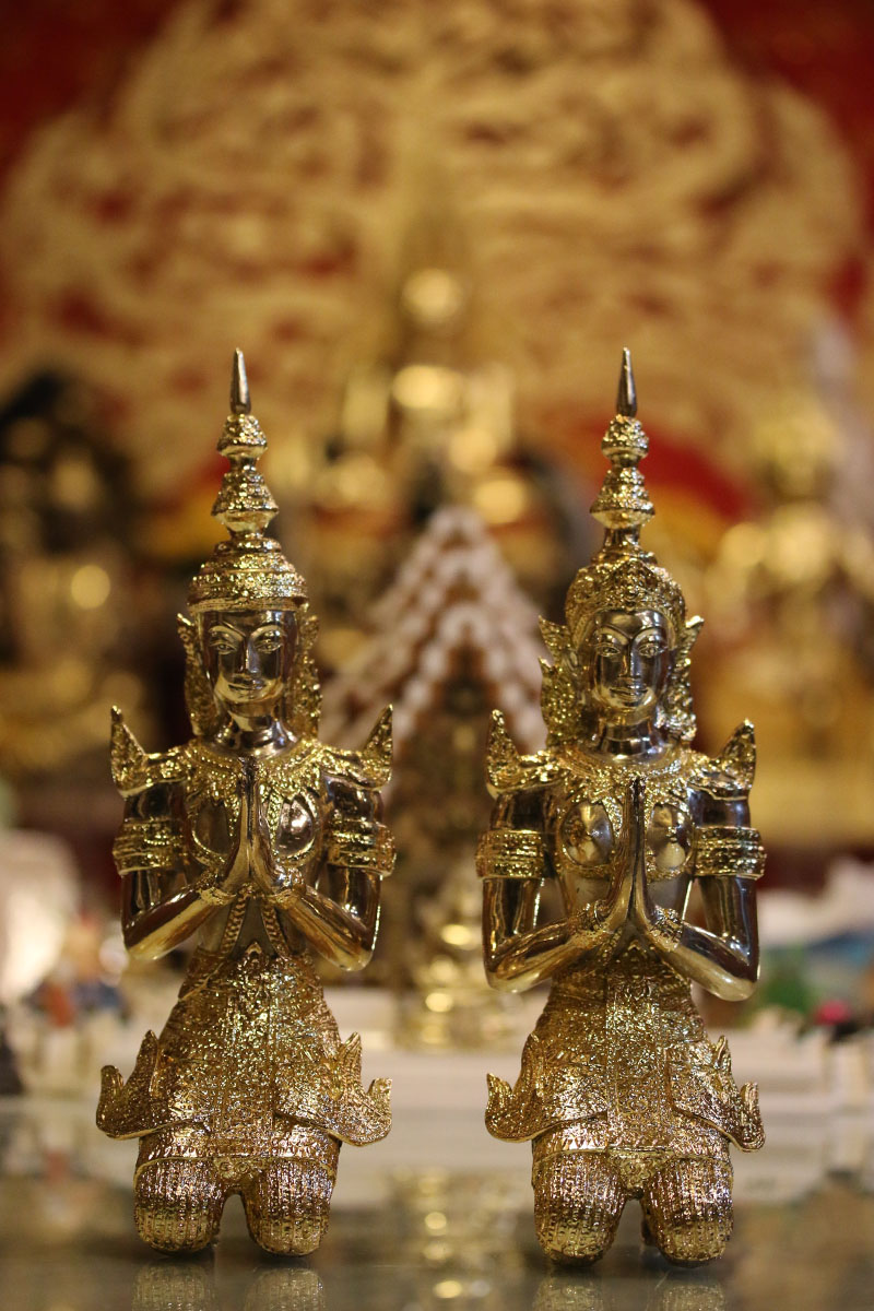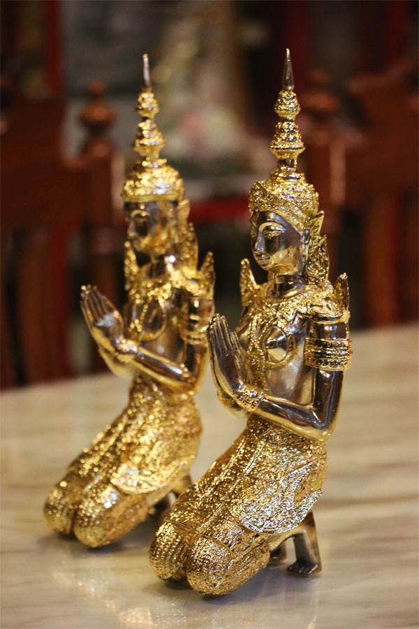 Beautiful set, pair of Thai's God/Deva, fit to place with other statues. Consecrate statue from ceremony by monks from Thailand. Plated with Gold.