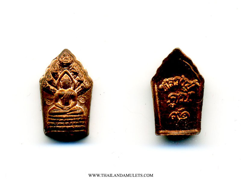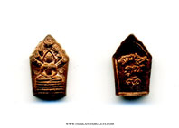 Made of copper. Small size amulet. Front side, Buddha Narkprok(Naga) blessing with 2 stamp codes by temple. Back side, "Luangpu Koon 91".