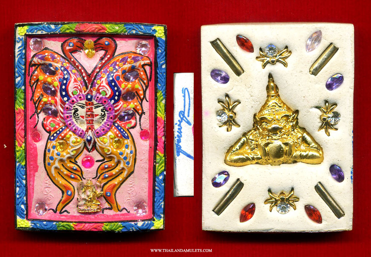 Backside, attached with Rarhu god amulet, gems, 4 silver takruts carve with protection mantras.