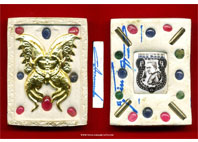 Plated with real gold. Backside, attached with Kruba Krissana's locket amulet. 4 silver takruts carve with protection mantras, quality gems attached.
