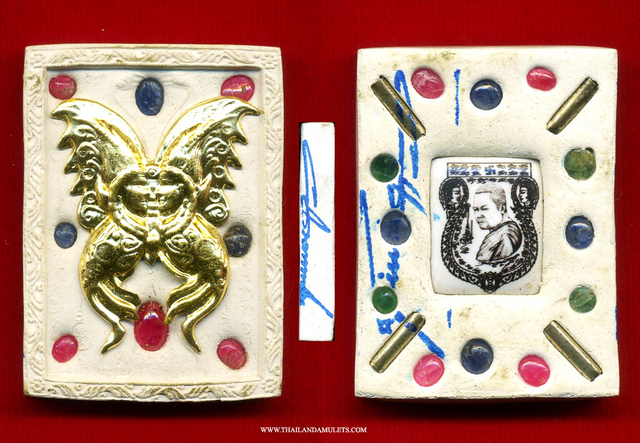 Old batch made in 2014 by Kruba Krissana. King of Butterfly amulet PimYai(Big mould) type blessing mantras by Kruba Krissana Intawanno, made of sacred holy materials, beautiful fragrance with art work, full consecrated wai-kru(worship elders/masters's spirits) ceremony B.E.2557(2014) at Weruwan temple. Given direct to Thailandamulets.com, official temple agent.