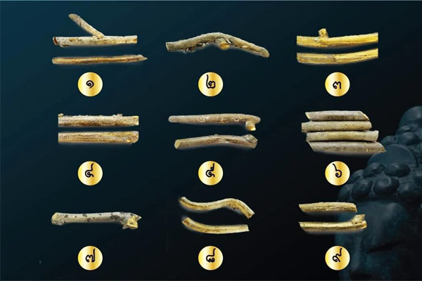 When amulets like Buddha PhraGring are made. Smith injected materials into the mold shaped similar to the apple tree. Then lop out the amulet's part like a fruit and leave the core part. Buddha PhraGring B.E.2566's material made from consecrated cores/body parts from many ceremonies, bless/chanted by many guru monks of Thailand.