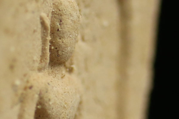 Front side, Buddha Parng-Samathi(Meditation blessing pose). Buddha PhraSomdej PimKatebuatoom(A head of blooming lotus) mould type with a crescent moon ear shape, a clear line of Sangkathi monk's robe. Back side, Luangpor Koon chanting, holding rosary blessing, surrounds with yant blessing mantras. Round shape with word "Koon" on top. "Wat Boon" temple at bottom.