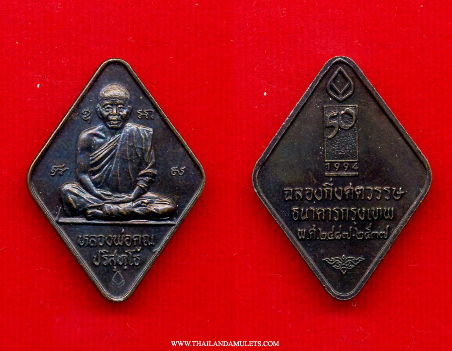 Rare and precious. Luangpor Koon's amulet batch "Chalong Gueng Sattawat" Celebrate half century, 50 years of Bangkok Bank Thailand. Ceremony B.E.2537(a.d.1994) bless/chanted amulet by Luangpor Koon Paritsutho, abbot of WatBanrai temple.