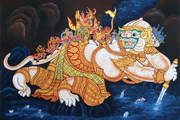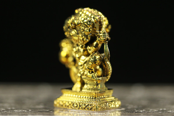 Hanuman. A famous god of Ramayana. Hanuman amulet is all auspicious and powerful, sakyant spell tatoo, mantras. These are famous use since old time by warriors, muay-thai kick boxer, police, soldiers, fire fighter etc. Hanuman blessing is to destroy obstacles and grant prayer a powerful protection from evils/darkness. Like the Hanuman himself.