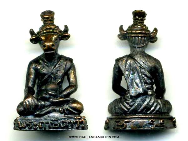 PhraRorsree Narvua is meditation image of Nandi the divine bull of Lord Shiva transformed himself into hermit image to continue practice meditation and conduct meritorious act in the living world. The amulet bring good fortune and protection.