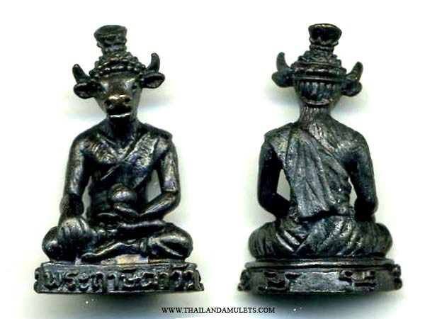 PhraRorsree Narvua is meditation image of Nandi the divine bull of Lord Shiva transformed himself into hermit image to continue practice meditation and conduct meritorious act in the living world. The amulet bring good fortune and protection.