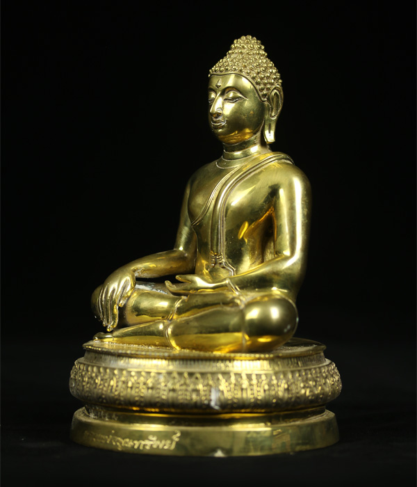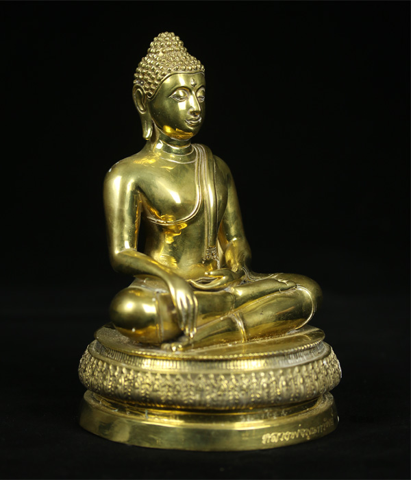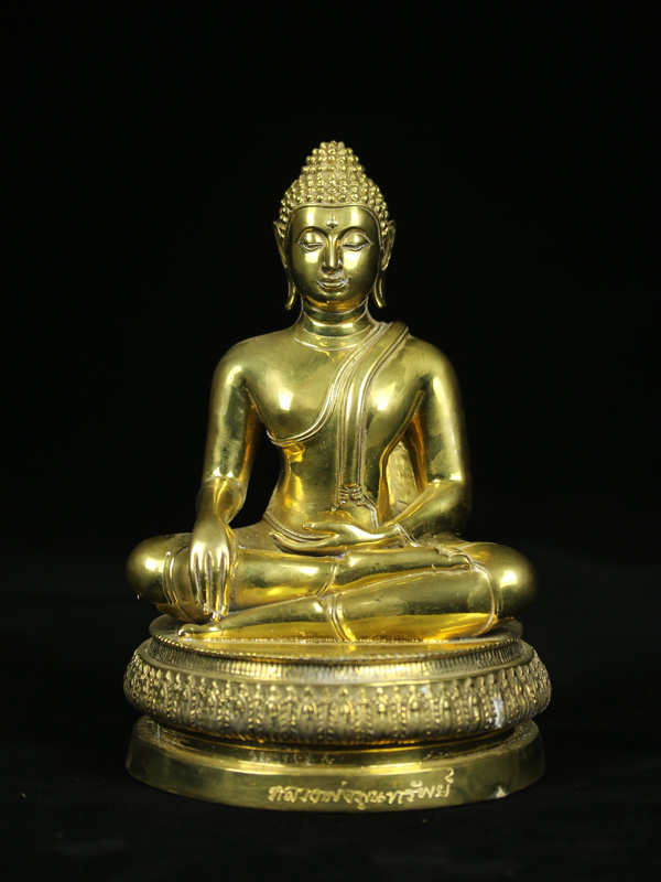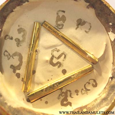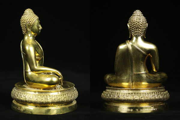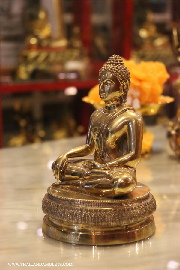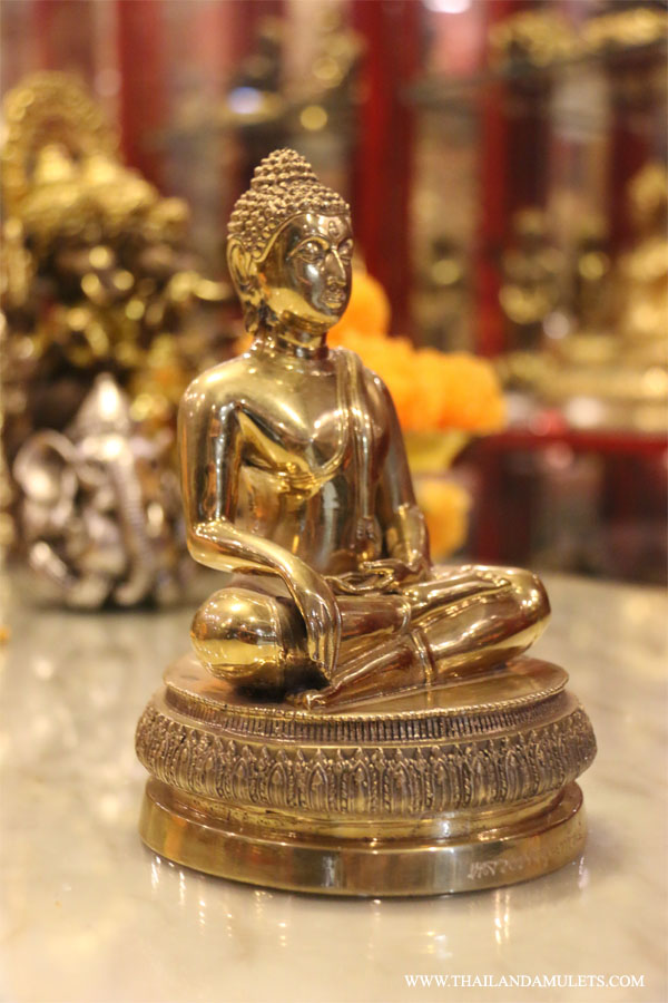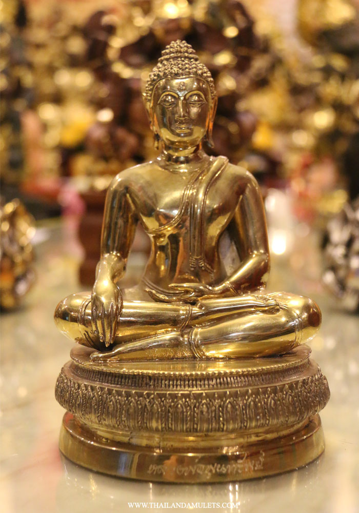 Buddha statue bless/chanted under right builded ceremony with blessing mantras by guru monks, use to place at home/rooms, place at office or business place to bring good fortune and protection. Bless/chanted with mantras for 3 months until open ceremonies, attached with 3 Kings style takruts, mantra plated craft with yant(Spell letters) by guru monk, wrote with yant heart of Sivali mantra. Sivali mantra blessing wealth luck into fortune. Center attached with 5 sacred woods used in ceremony, "Koon"(Multiply) "Learn"(Raise) "Sak"(Teak) "Payung"(Uphold) "Dang"(Red).