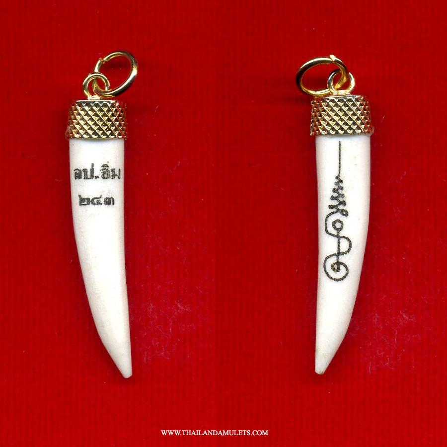 Tiger Fang is one famous amulet type since old times. Made from various part of strong creatures. This is use for protection. Strong spirit blessing. Ward off evils/darkness, curses and sickness. Tiger is considered a powerful creature and spirit. Same with elephant. The amulet is made of Elephant's bone ex. Head(Skull), Body(Spine/Ribs), Hibs, Legs. Stamp "Yant" blessing mantra by the monk and temple stamp code.