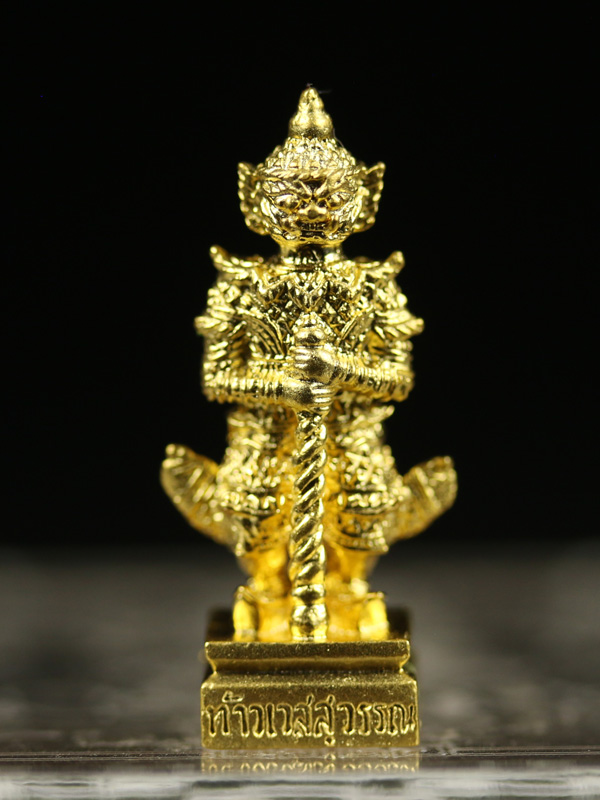 TaoVessuwan is the most powerful god who protect this world and religion, the statue often seen infront of the temple. He is the god of protection and blessing to those who practice dharma and conduct good merits. According to tevaphoom scroll, TaoVessuwan is a strong giant conduct good merit for thousands of year until he receive the blessing of PhraPhrom(Brahma) to rule the class of Jatumaharajikha heaven with prosperity, in the human world he's the guardian of good people and religion.