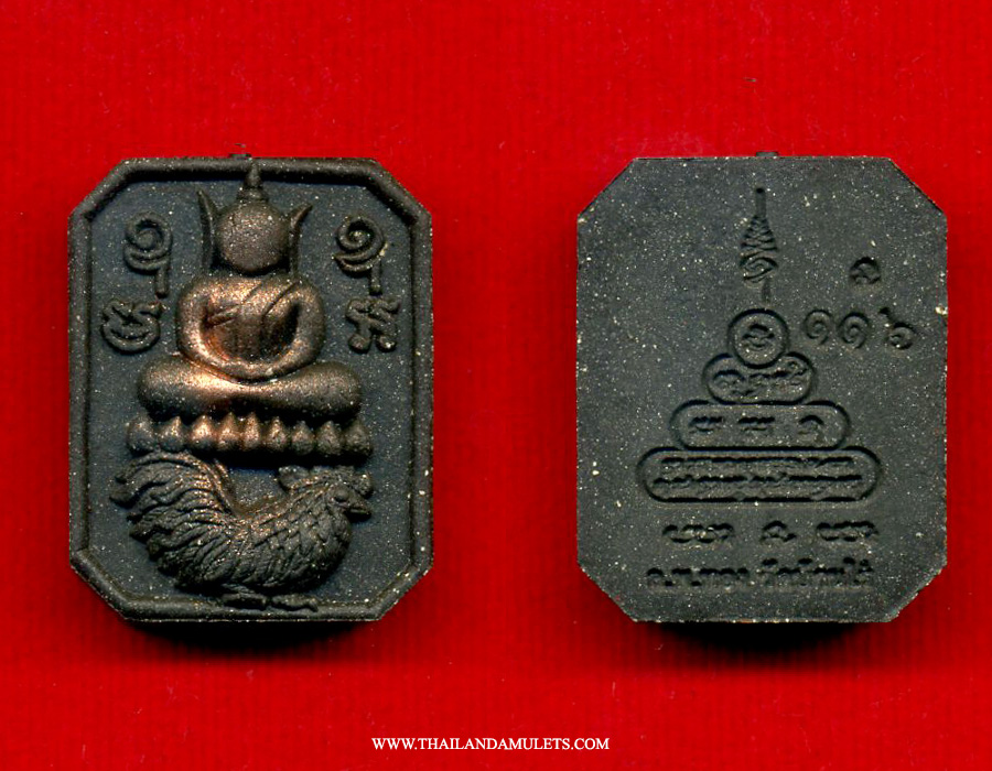 Made of sacred holy powder. Buddha riding cock amulet made famous by Luangpor Parn, guru monk of Thailand. The meaning of the cock is bravery, courage, and to bring unlimited supply into fortune fast. Famous mold type, made by many guru monks until present day.