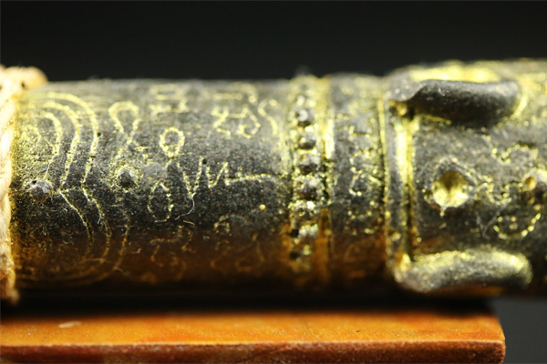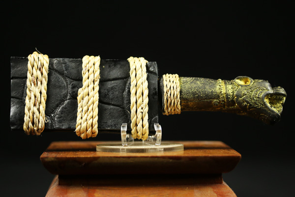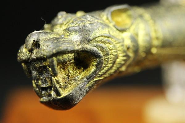 Tiger hilt carved with yant blessing mantra. The blade made of Lek-Numpi iron and shealth made of crocodile's scales.