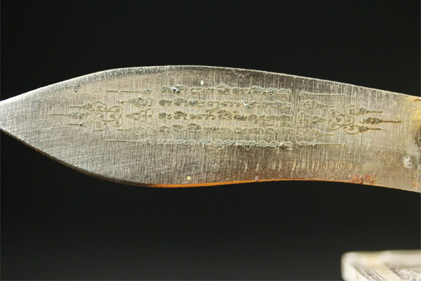 Meedmor meaning master/doctor's knife/dagger in Thai. Used by monks in old days while pilgrimage for protection. To heal. To drive aways curses spirits, evils, sickness. Use in ceremony for blessing people and holy items. Meedmor is considered one of very old type sacred object of Thailand, similar to sword carve with mantras.