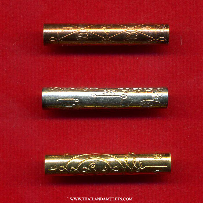 1st Takrut (Gold). Use YantKru(Master yant) by Luangpu Paw Powaroh which named "Yant Tor Khongrapan" blessing invincible. This yant is master yant by Luangpor Glan of WatPhrayardgararm, guru monk of Thailand. Blessing strong protection(khongrapan), safe protected(clawclard) and mahaautt which protect from all direction from all weapons.