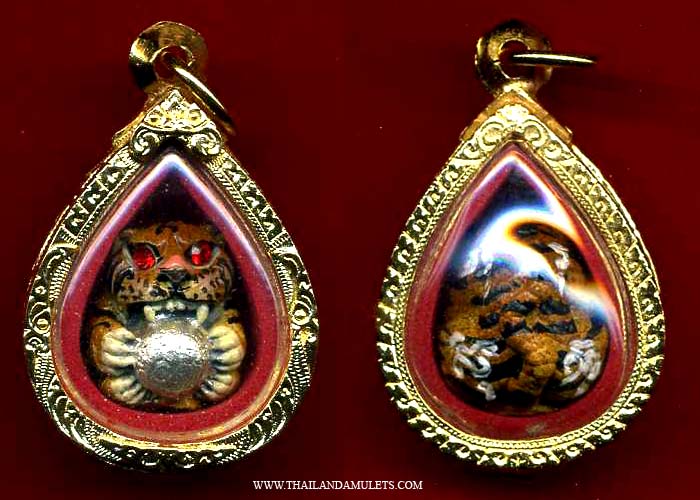 Luangpor Pern famous name title with Luangpor Pern riding tiger, with his blessing kindness and spell mantra. Made the Sakyant spell tattoo famous worldwide.