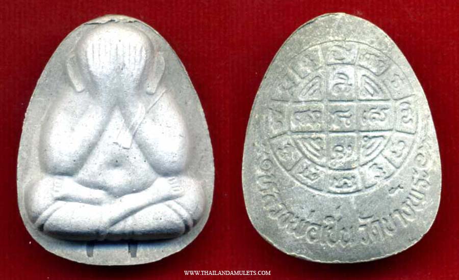 Powerful blessing PhraPidda amulet by Luangpor Pern ceremony at WatBarngphra b.e.2537(a.d.1994), batch "Romyen"(Peaceful), PhraPidda bless/chanted by Luangpor Pern blessing strong protection fortune, bring peaceful into family and people around, attached with 2 silver trakruts for protection, backside wheel of fortune filled by yans mantras by Luangpor Pern to bring good fortune.