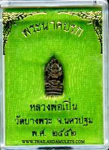 Buddha amulet given name "PhraNarkprok" Buddha meditation with Naga(Dragons) on top, mini size Buddha amulet consecrated from WatBangphra temple, ceremony B.E.2552(a.d.2009). Blessing good fortune and protection.