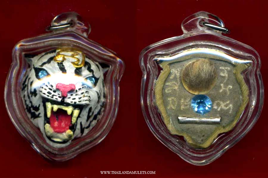 Luangpor Pern famous name title with Luangpor Pern riding tiger, with his blessing kindness and spell mantra. Made the Sakyant spell tattoo famous worldwide.