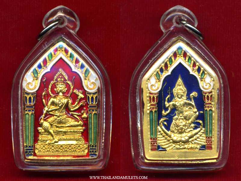 Description PhraPhrom(Brahma) and PhraNarai(Vishnu) riding garuda amulet. Bless/chanted from WatGawjamfah temples with many guru monks joined.