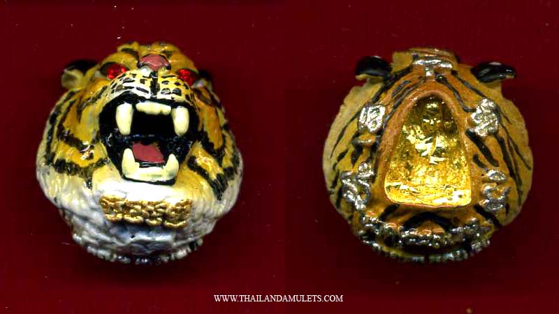 Frontside, beautiful art work with yant blessing matra at tiger's forehead. Backside, wrote with yant mantra, center with Lp.Pern meditaton blessing inside, with yant blessing mantra for protection. One good blessing tiger amulet from WatBangphra temple.