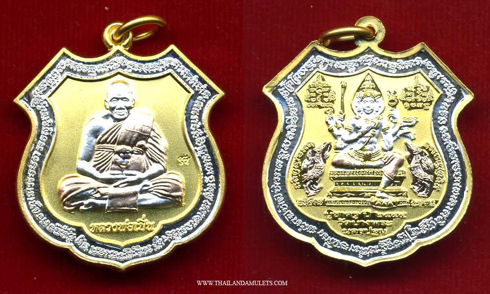 Luangpor Pern's amulet, 3 Kings style gold/silver/copper batch "Bucha Kru" worship elders/masters ceremony at WatBangphra temple B.E.2555(2012). Great design amulet, bless/chanted for good fortune and protection. LohYai is big shield.