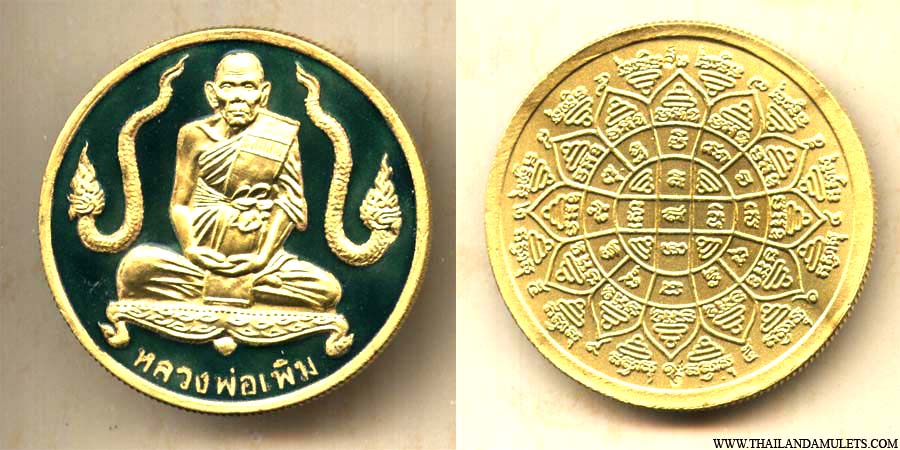 Luangpor Perm 2 Dragons Gold Wheel of Good Fortune Mantra