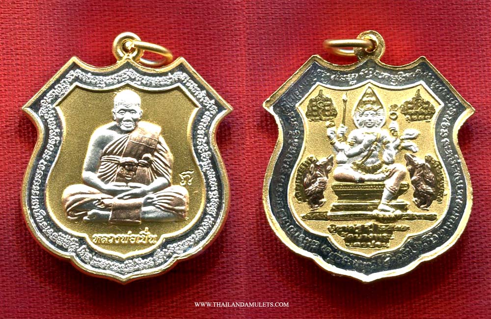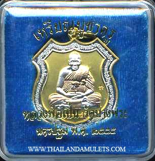 Luangpor Pern's amulet, 3 Kings style gold/silver/copper batch "Bucha Kru" worship elders/masters ceremony at WatBangphra temple B.E.2555(2012). Great design amulet, bless/chanted for good fortune and protection. LohYai is big shield.