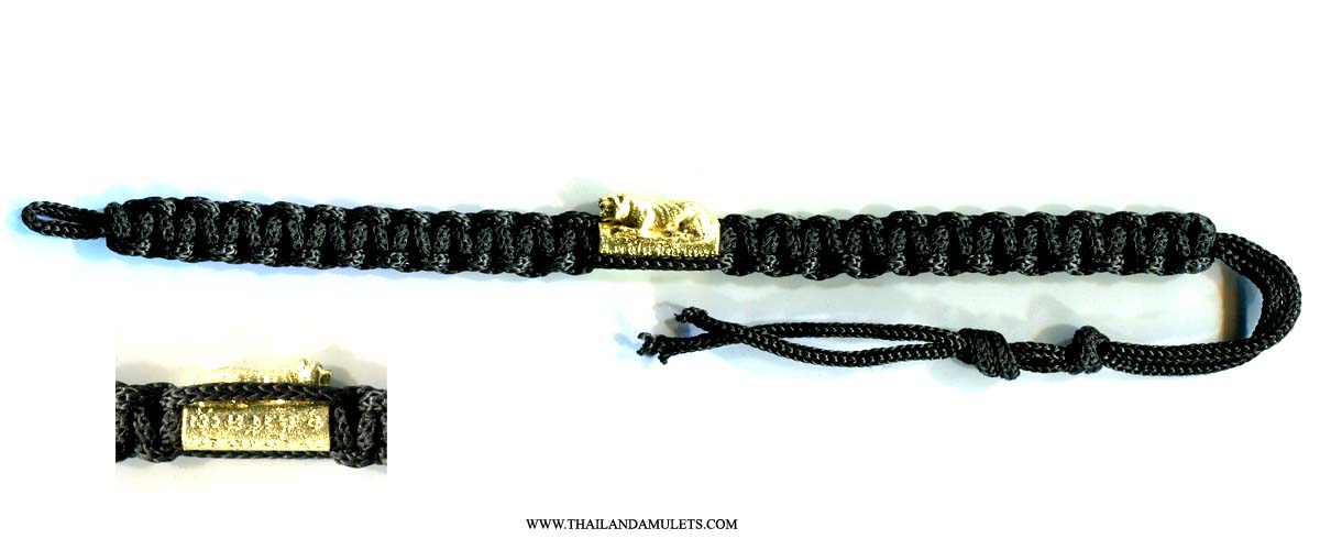 Tiger Robe Bracelet use zai-zin chanted holy robe in the ceremony, attached a golden tiger amulet with yants blessing mantra, bless/chanted wai-kru(worship elder/master's spirits) ceremony B.E.2557(2014) at Wat Bangphra temple.