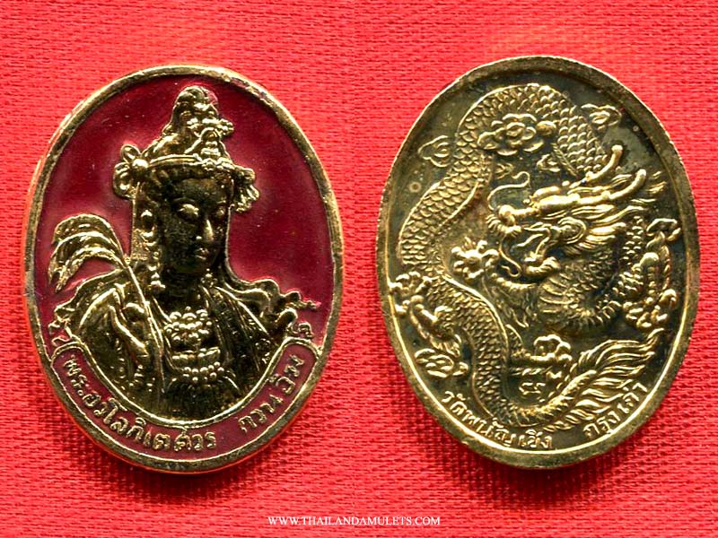 Beautiful designed Guanyin amulet with Lhong-Yar art style, enamel work. Backside dragon image. Blessing kindness love from all, protection and full of prosperity.