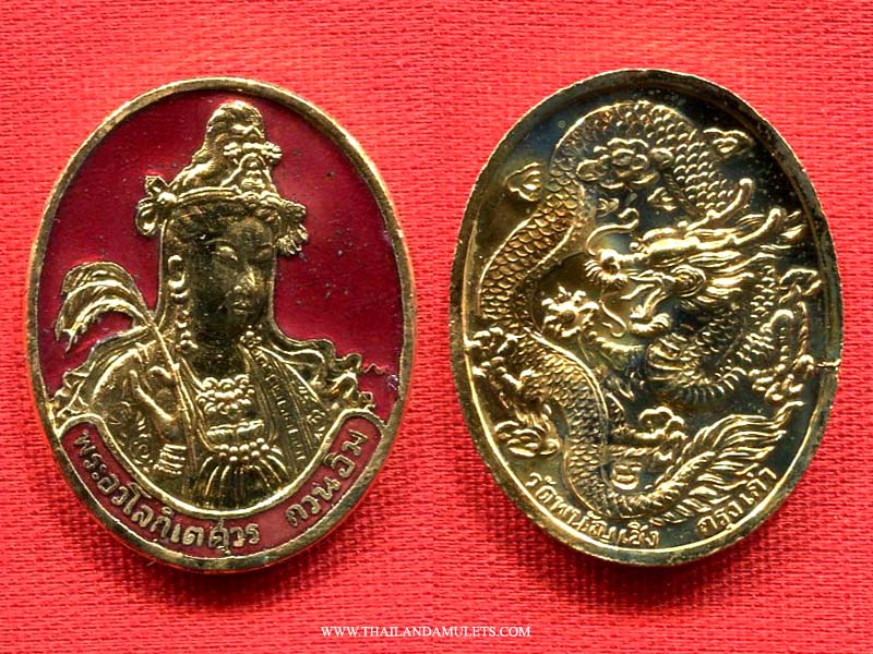 Beautiful designed Guanyin amulet with Lhong-Yar art style, enamel work. Backside dragon image. Blessing kindness love from all, protection and full of prosperity.