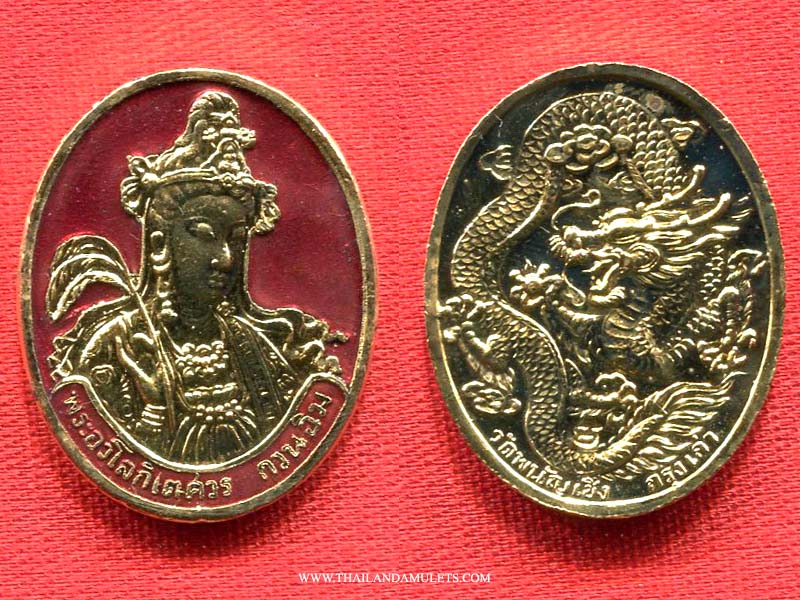Beautiful designed Guanyin amulet with Lhong-Yar art style, enamel work. Backside dragon image. Blessing kindness love from all, protection and full of prosperity.