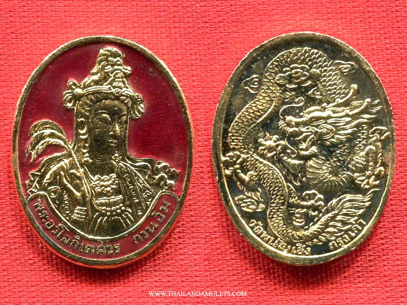 Beautiful designed Guanyin amulet with Lhong-Yar art style, enamel work. Backside dragon image. Blessing kindness love from all, protection and full of prosperity.
