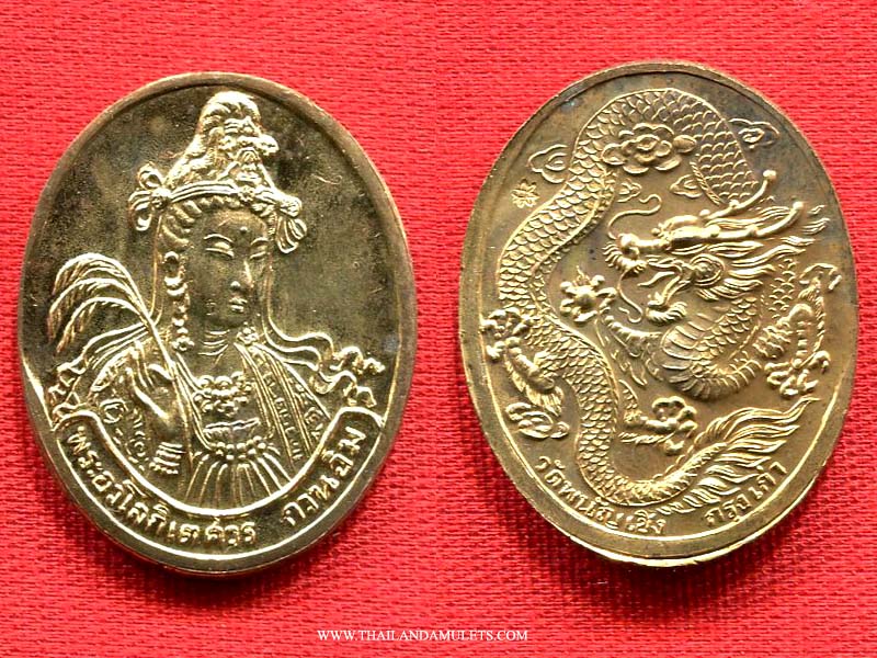 Beautiful designed Guanyin amulet with Lhong-Yar art style, enamel work. Backside dragon image. Blessing kindness love from all, protection and full of prosperity.