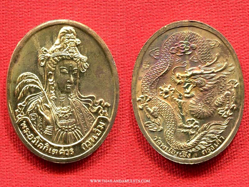 Beautiful designed Guanyin amulet with Lhong-Yar art style, enamel work. Backside dragon image. Blessing kindness love from all, protection and full of prosperity.