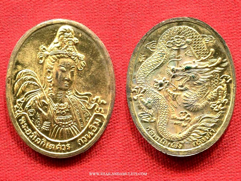 Beautiful designed Guanyin amulet with Lhong-Yar art style, enamel work. Backside dragon image. Blessing kindness love from all, protection and full of prosperity.