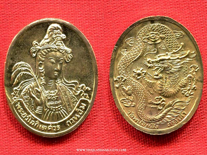 Beautiful designed Guanyin amulet with Lhong-Yar art style, enamel work. Backside dragon image. Blessing kindness love from all, protection and full of prosperity.
