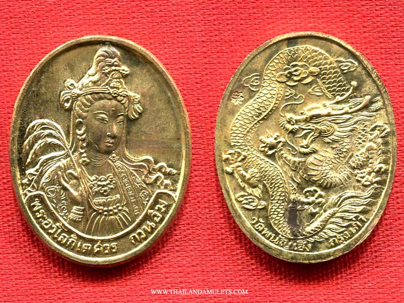 Beautiful designed Guanyin amulet with Lhong-Yar art style, enamel work. Backside dragon image. Blessing kindness love from all, protection and full of prosperity.