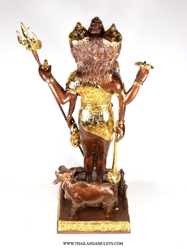 Finest craftmanship, quality gold art work, consecrated by Luangpor Teang Puripunyo, guru monk of Thailand. PhraShiva statue come with 3 faces, with PhraPhrom(Brahma) and Narai(Vishnu) side with Nandi the divine bull.
