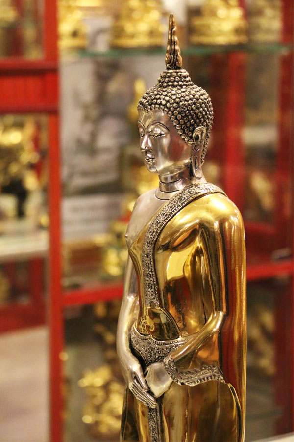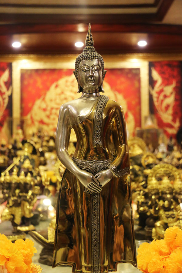 Buddha Parng-Tawained(Offer eyes's sight). Sunday Buddha, standing meditation blessing. Large size standing Buddha blessing statue, thai Buddha style. Buddha blessing dharma and protection to fortune. Consecrate statue from ceremony by monks from Thailand.