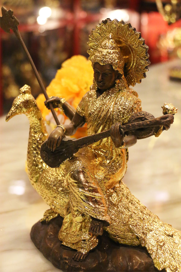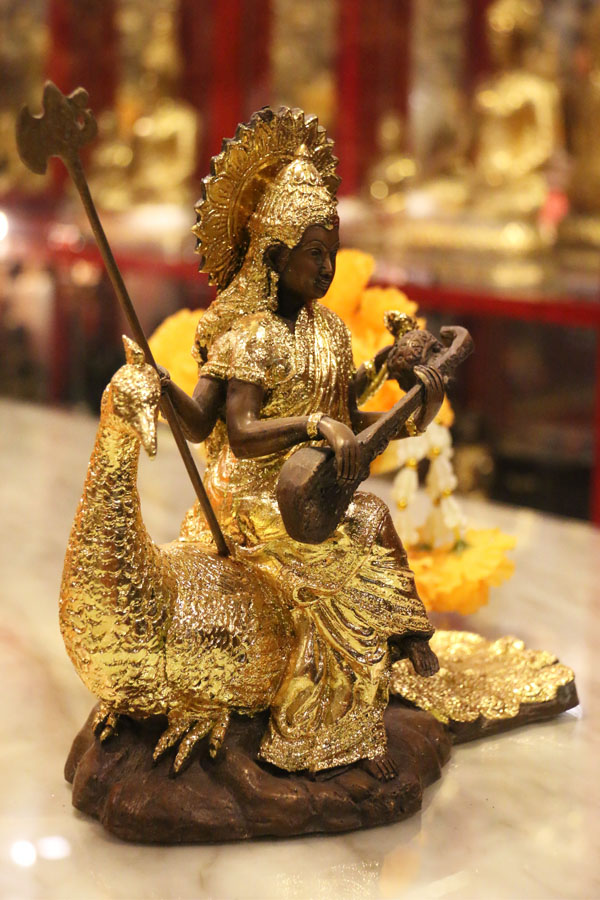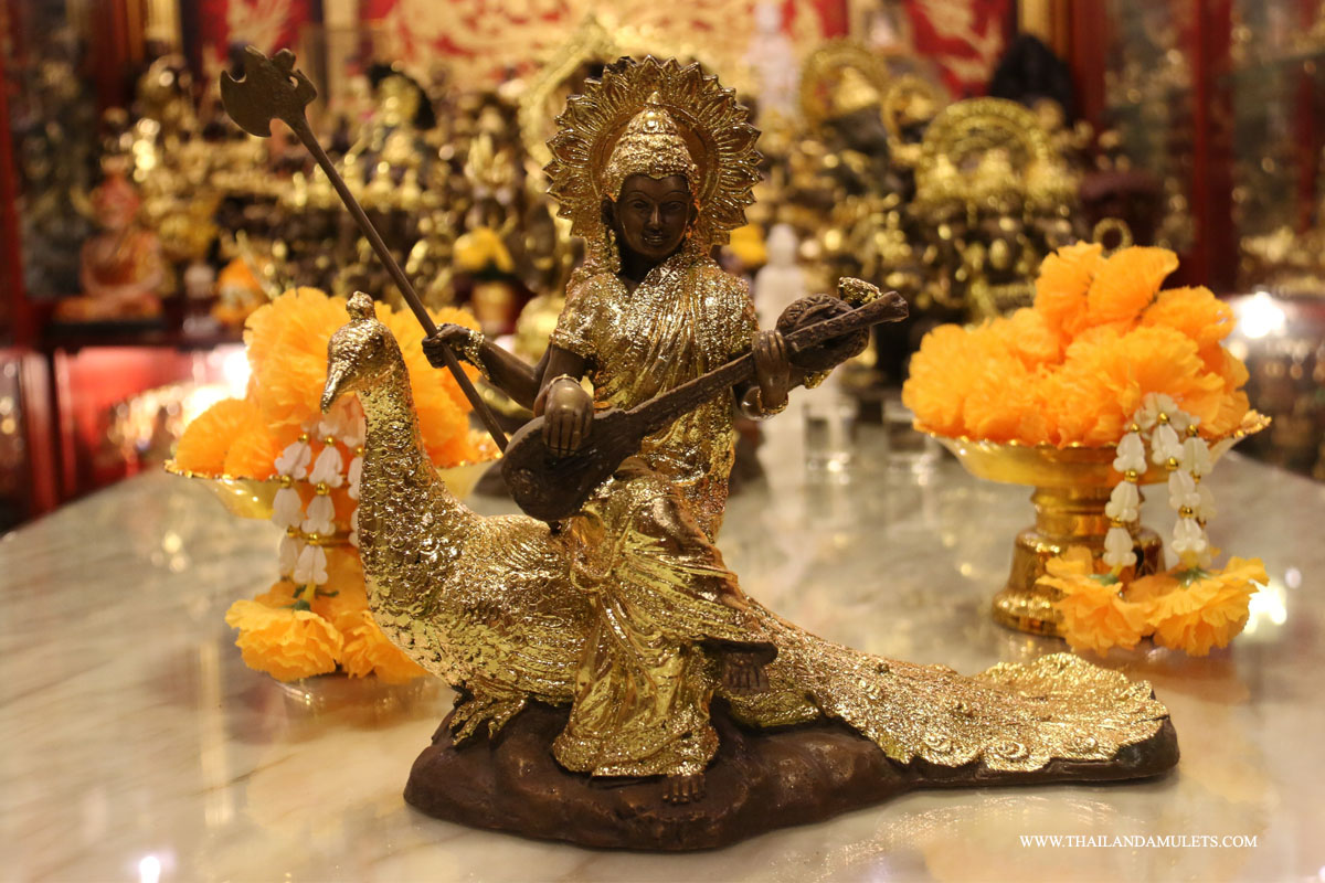 Beautiful blessing statue of Goddess Saraswati. Consecrate statue from ceremony by monks from Thailand. High quality gold art work.