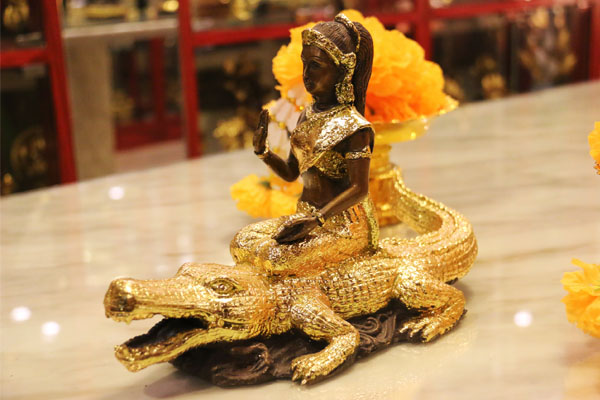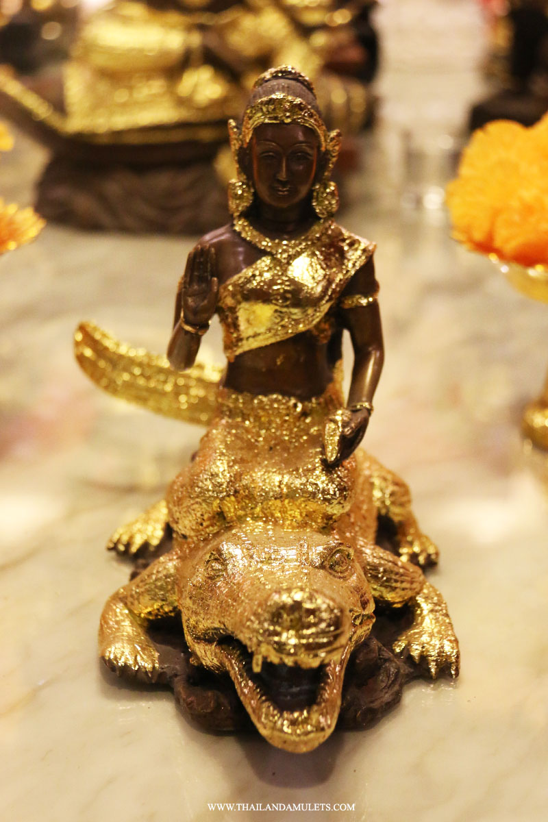 Vamala Goddess, a wife of Chalawan(King of crocodile) from Graithong story. Consecrate statue from ceremony by monks from Thailand. High quality gold art work.