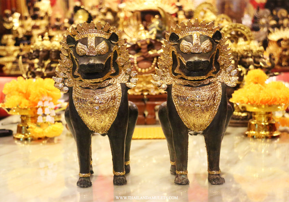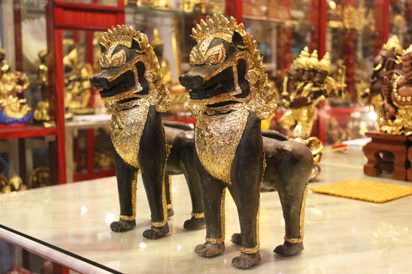 Pair of Sing(Lions) place for deco by statue's side. High quality gold art work.