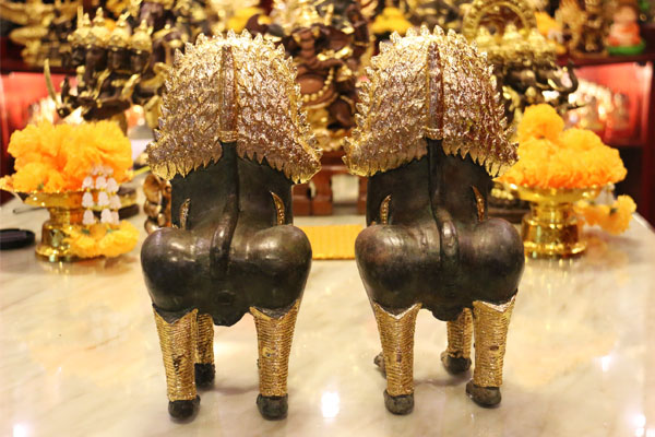 Statues from temple attached with various holy amulets at buttom/wrote mantras by monks from ceremonies. High quality gold art work.