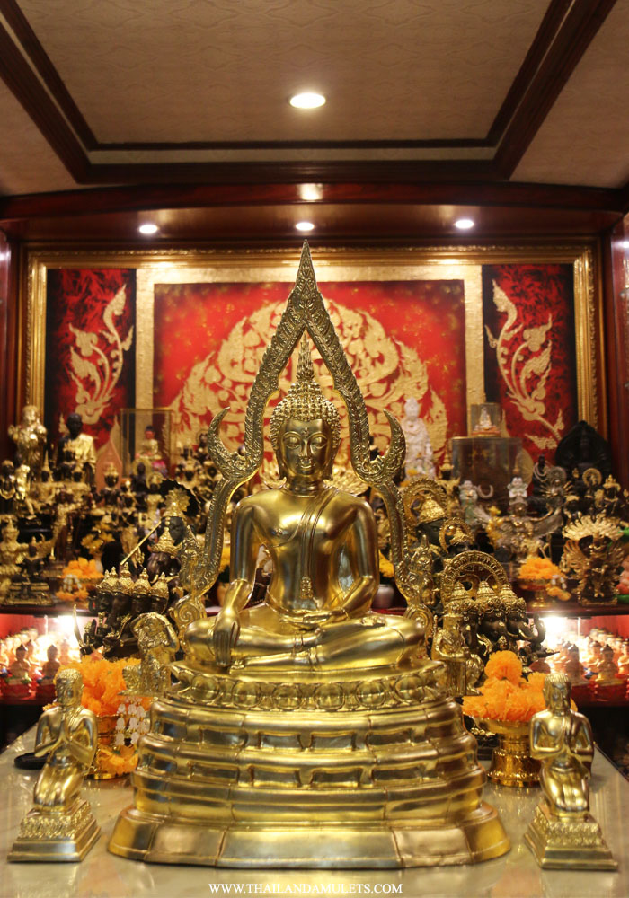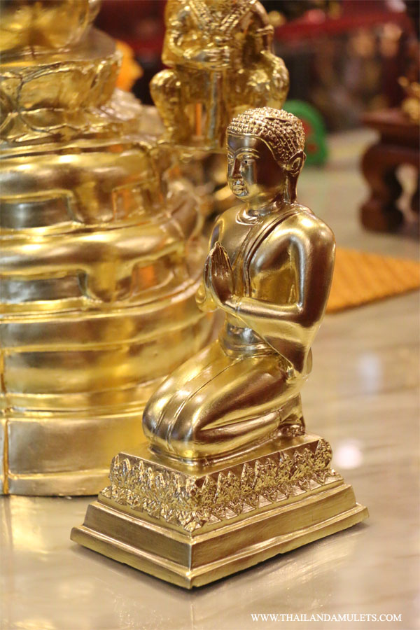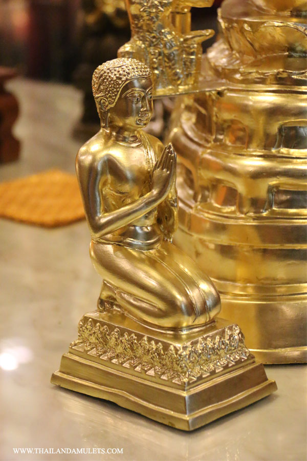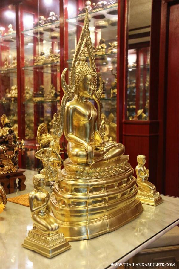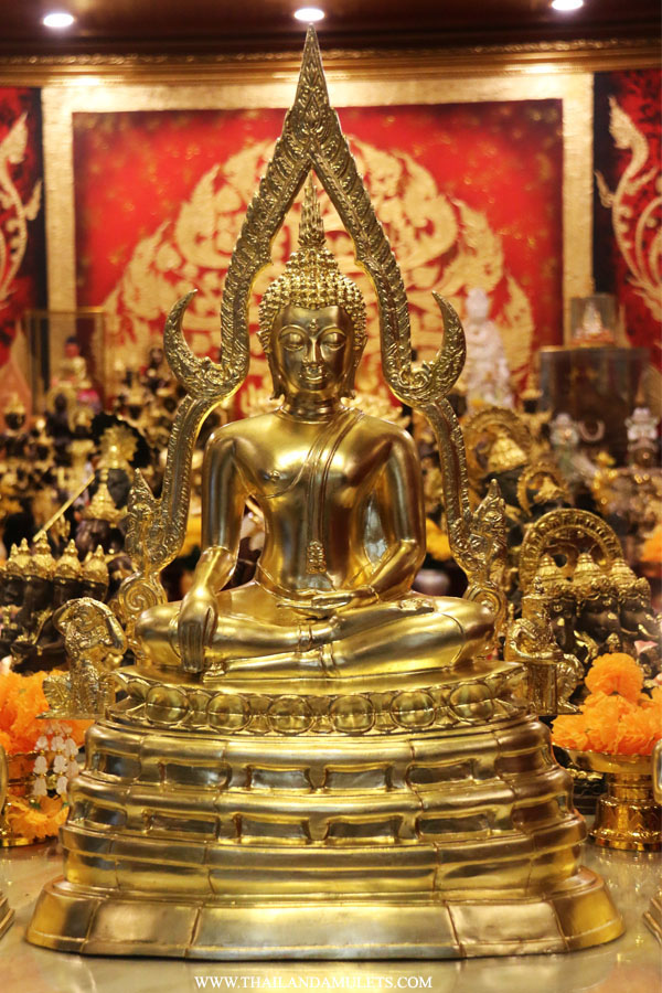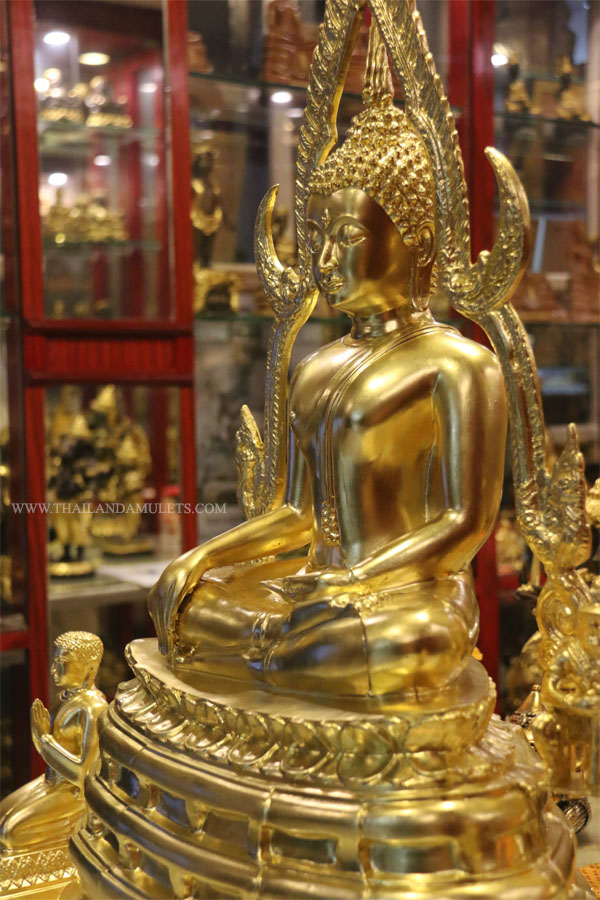 Buddha Chinnarath. High heaven base style. Come with 2 statues by side Mokalana and Sareebudd disciples praying. High quality gold art work.