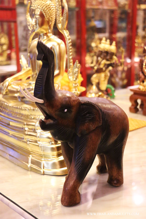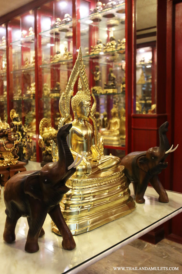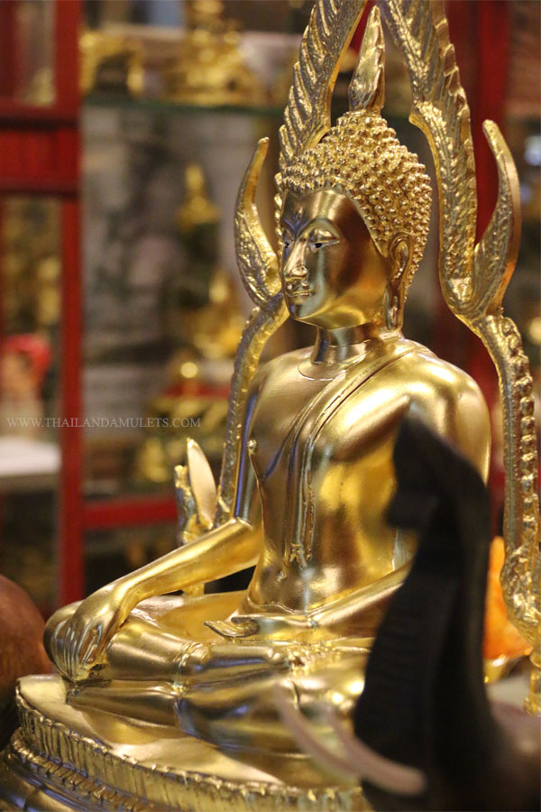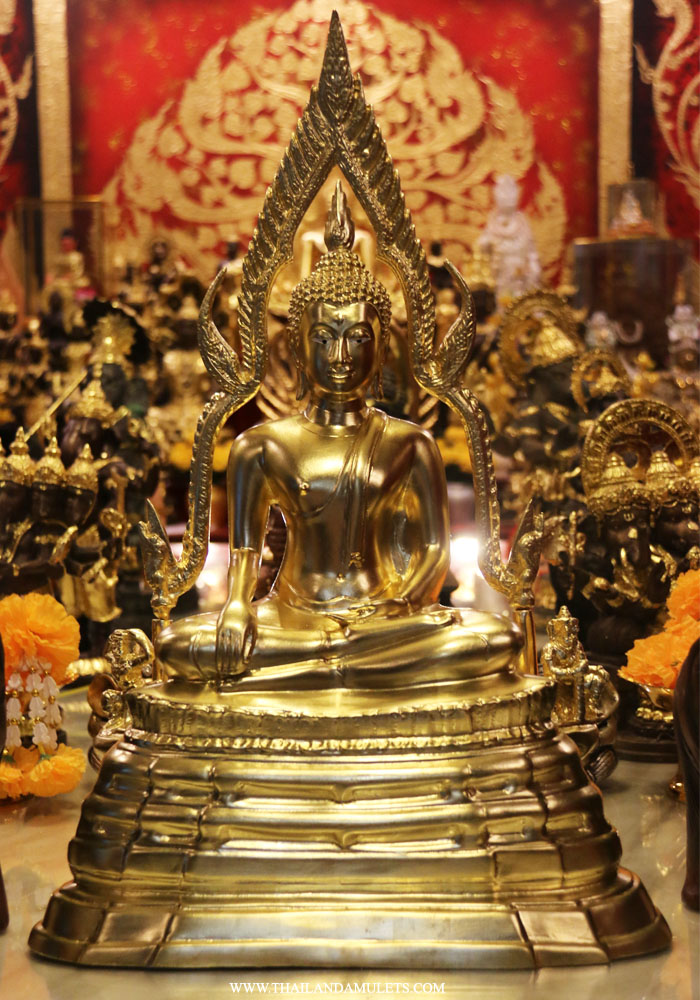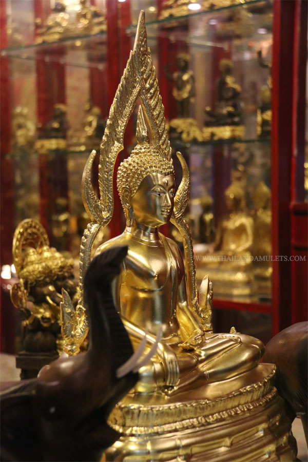 Buddha Chinnarath. High heaven base style. Come with 2 wood handicraft elephants by side. High quality gold art work.