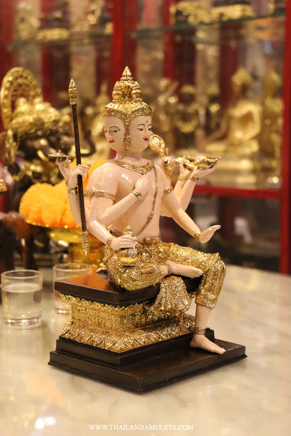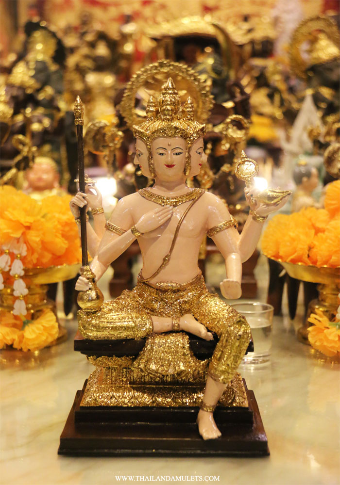 Bless/chanted by Luangpor Teang Punripunyo, guru monk of Thailand. Attached with holy items by famous guru monks, takrut craft with yant blessing mantra, quality gold art work. PhraPhrom(Brahma) blessing wisdom and purity, bring successful to fortune.