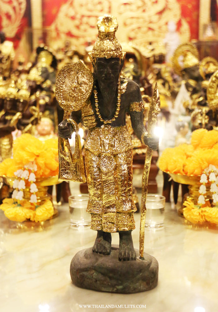 Holy statue place to bring positive force, holy light blessing by God/Deva and all the good spirits, blessing peaceful and good fortune to place and person. Purify unholy area and evils/darkness. Bless/chanted with mantras by guru monks of Thailand. Beautiful craftmanship, high quality fibre glass guru monk statue consecrated from ceremony. Bless/chanted by guru monks of Thailand. High quality gold art work.