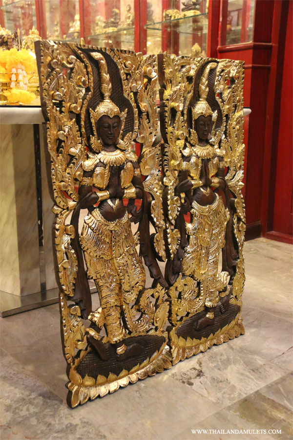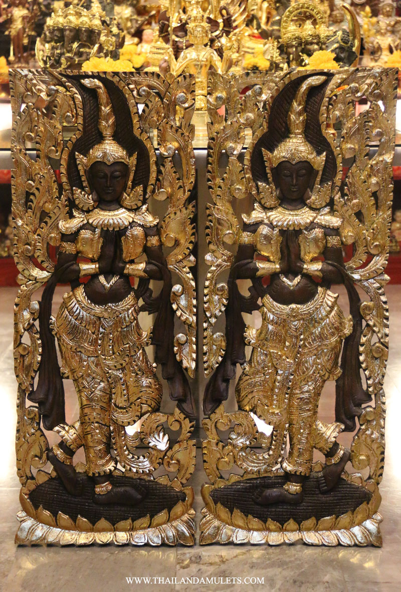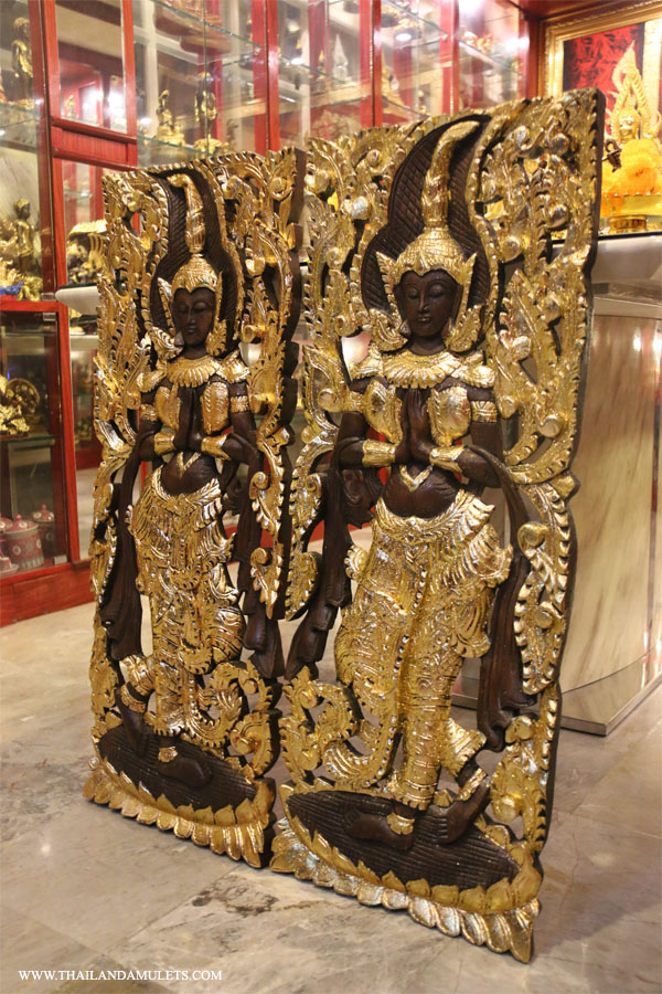 2 Deva praying. Handicraft, made of teak wood and gold art work.